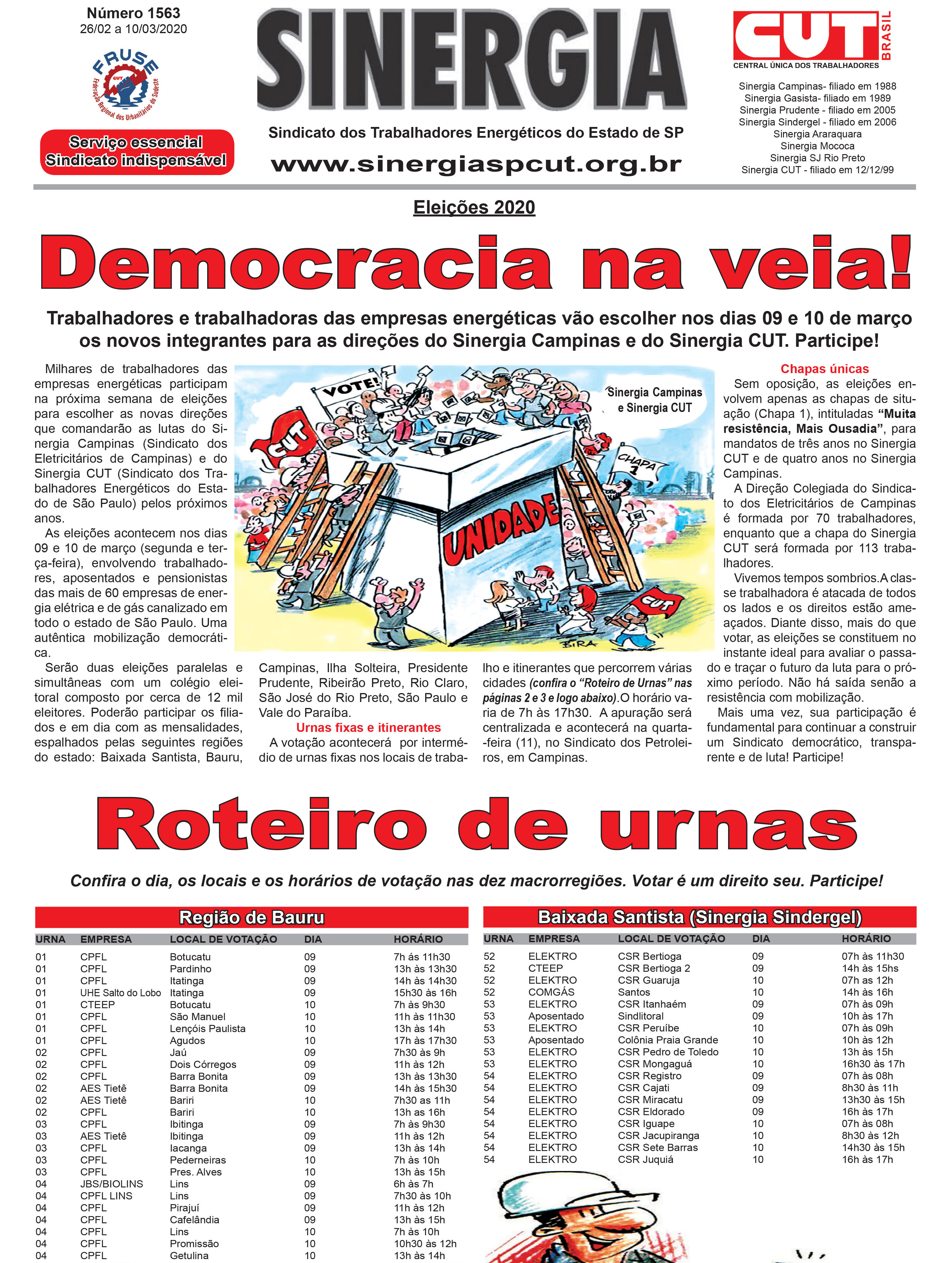 Jornal Sinergia CUT 1563_Eleições Sindicais 2020: Acompanhe o roteiro de urnas!