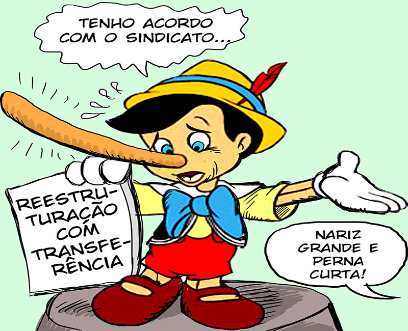 O que aconteceu? Ciente de que o processo de reestruturação com transferências desagrada a categoria e poderia gerar impasses e embates entre empresa e trabalhadores, esse líder teria feito um discurso defensivo afirmando que tal medida teria sido negociada e acordada com o Sindicato. Não. Isso não é e nunca foi uma verdade.