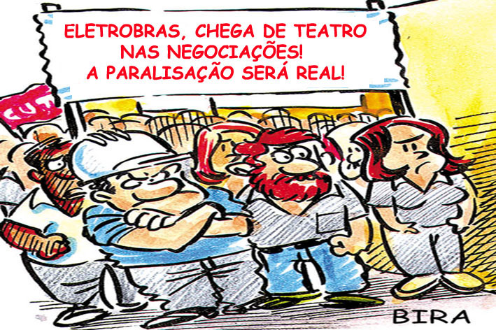 … e vão deliberar até segunda (02) Plano de Luta que prevê paralisações de 72 horas em todo o país a partir da próxima quarta (04) Durante a terceira rodada de negociação, ocorrida na última quinta (28), a direção da Eletrobras e o governo reafirmaram a estratégia de apresentar uma proposta rebaixada que coloca a categoria em um patamar inferior às demais. Para o Coletivo Nacional dos Eletricitários (CNE), a Eletrobras, DEST e Ministérios se uniram e, ao invés de uma reunião de negociação, realizaram um verdadeiro “teatro”. “O processo negocial não apresenta avanços com o objetivo de desgastar os sindicatos e desmobilizar a categoria. A resposta é a mobilização nacional”, afirmam os sindicalistas. Plano de luta