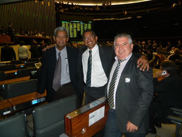 Nossa luta na Câmara A peleja que foi iniciada na manhã de terça (11) rendeu muito bate boca entre parlamentares da situação e da oposição. O presidente do STIEEC/Sinergia CUT, Gentil Teixeira de Freitas, e o dirigente do Sinergia CUT, Wilson Marques, acompanharam toda essa discussão. Já na quarta-feira pela manhã, antes do início da plenária, visitaram todos os líderes da base aliada com o objetivo de obter apoio para a aprovação das propostas dos trabalhadores, inclusive o dos deputados Vicentinho e Figueiredo.