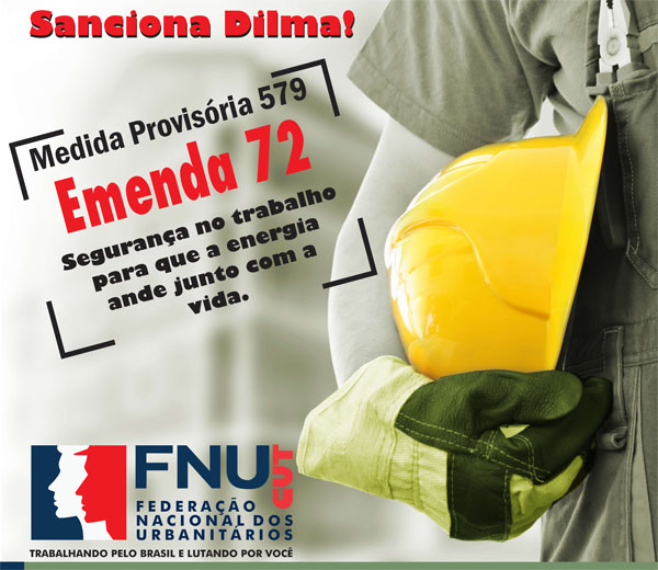 A Federação Nacional dos Urbanitários (FNU), que congrega os sindicatos de trabalhadores em energia elétrica, saneamento, gás e meio ambiente e a Federação Interestadual de Sindicatos de Engenheiros (Fisenge), encaminhou carta à presidenta Dilma Rousseff solictando a manutenção da emenda aprovada no Plenário da Câmara e do Senado, ao Projeto de Lei de Conversão da Medida Provisória 579, que acrescenta às condições para renovação das concessões do setor elétrico a adoção de padrões de segurança no trabalho, a serem definidos pela Aneel, com base na legislação vigente. Confira a carta aberta clicando aqui.