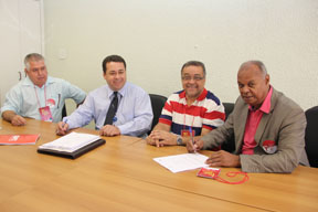A reunião para assinatura do Acordo, que tem validade até 2015, aconteceu já na tarde desta quinta-feira (08) e contou com a presença do presidente da CUT Estadual São Paulo, Adi dos Santos Lima, junto com os dirigentes do Sindicato, Gentil Freitas e Edmar Feliciano. Assim, ficam garantidos os 45% do retroativo a 1º de junho no pagamento quinzenal.