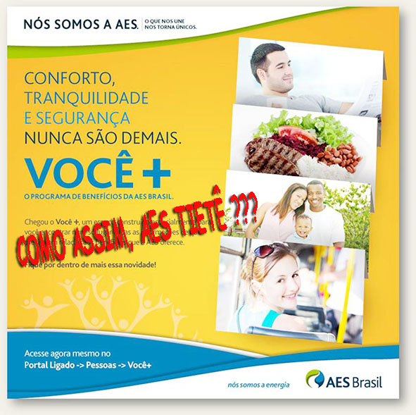 Nada de errado há com o “VOCÊ +”. O equívoco está na atitude da empresa de bater e depois assoprar. Como usufruir do conforto, tranquilidade e segurança se não há respeito e veracidade no que se diz e faz? Melhor pensar seriamente sobre isso, AES Tietê!