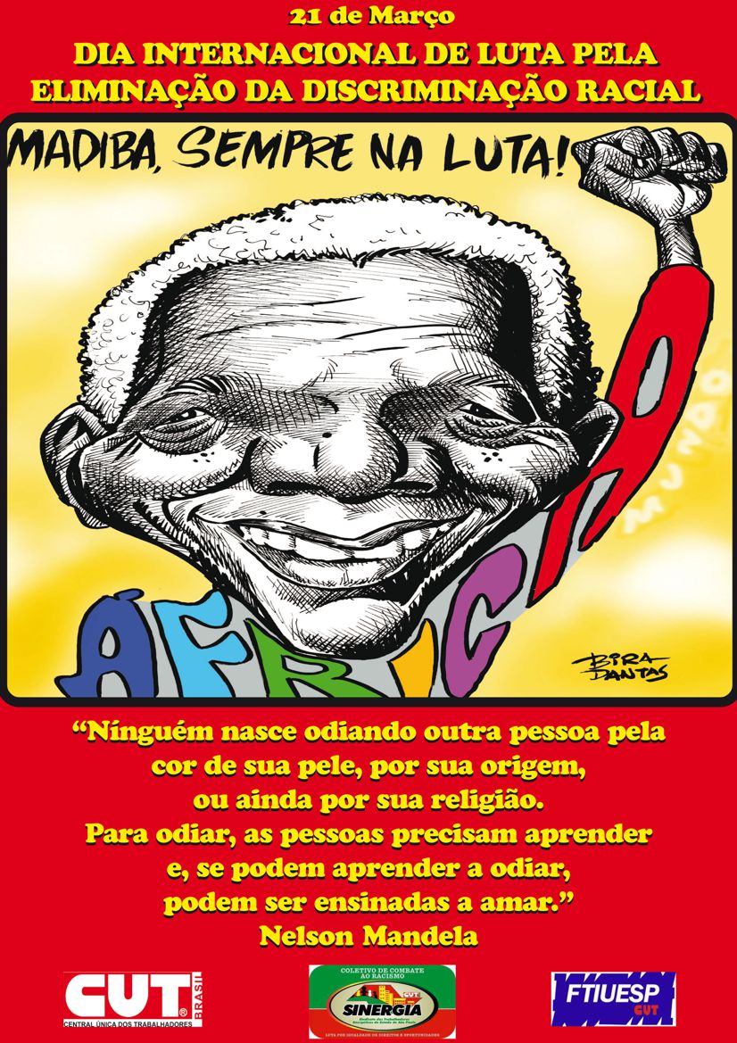 O Sinergia CUT apoia a Luta pela Eliminação da Discriminação Racial, referenciada no dia 21 de março. É uma data para homenagearmos e reverenciarmos os mártires na luta contra o racismo em todo o mundo.
