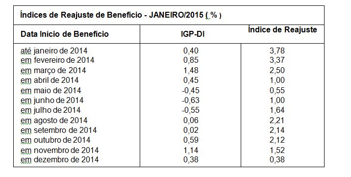 Conforme e-mail recebido pela Fundação CESP em janeiro/15, segue planilha com os índices de reajuste de benefícios do planos PSAP/CESP-B1, PSAP/EMAE, PSAP/Transmissão Paulista, PSAP/Tietê, PSAP/Elektro e PSAP/Piratininga.