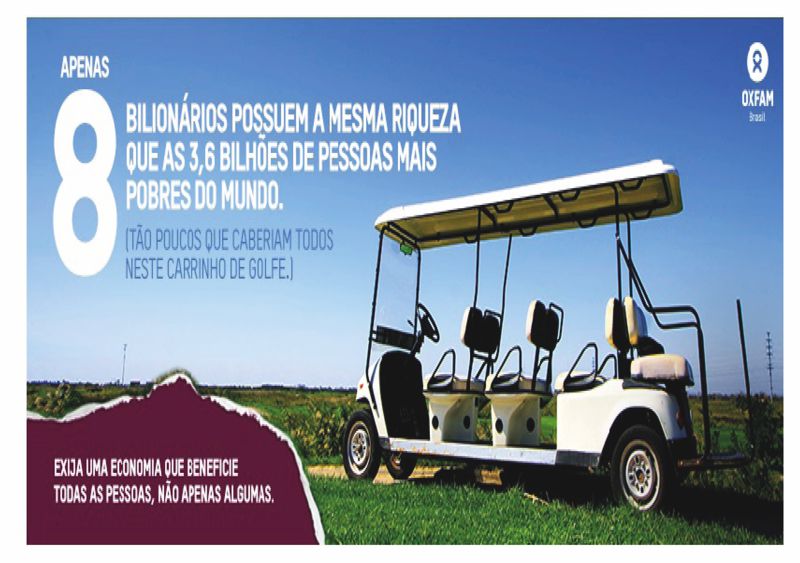 Apenas oito homens possuem a mesma riqueza que os 3,6 bilhões de pessoas que compõem a metade mais pobre da humanidade, de acordo com um novo relatório publicado pela Oxfam, apresentado, em 16 de janeiro deste ano, na reunião anual de líderes políticos e empresariais em Davos. O documento Uma economia humana para os 99% mostra que a diferença entre ricos e pobres aumenta a cada edição do estudo, numa velocidade muito maior do que a prevista. Os 50% mais pobres da população mundial detêm menos de 0,25% da riqueza global líquida. Nesse grupo, cerca de 3 bilhões de pessoas vivem abaixo da “linha ética de pobreza” definida pela riqueza que permitiria que as pessoas tivessem uma expectativa de vida normal de pouco mais de 70 anos.