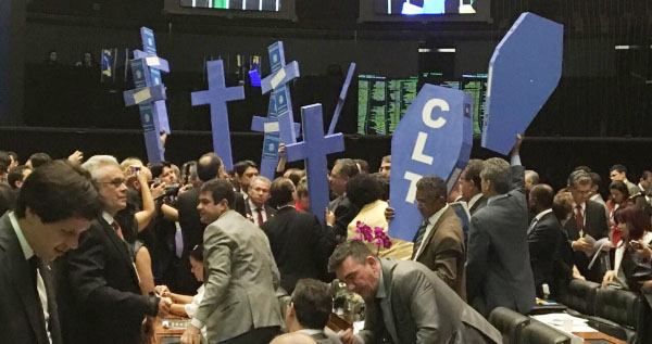 Por 296 votos a favor e 177 contra, a Câmara dos Deputados aprovou o Projeto de Lei que decreta o fim da Consolidação das Leis Trabalhistas (CLT) na noite desta quarta-feira (24). A partir de agora o PL 6787/16 seguirá para apreciação do Senado Federal, que poderá acabar de vez com uma conquista de mais de 60 anos de lutas da classe trabalhadora.