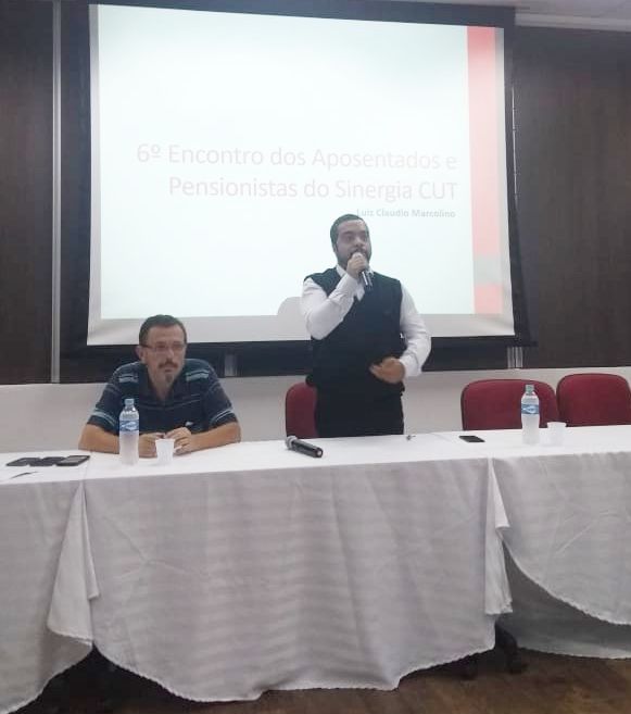 No primeiro dia de debates do 6º Encontro de Aposentados, Aposentadas e Pensionistas do Sinergia CUT, os participantes também tiveram espaço para refletir sobre a conjuntura nacional por intermédio das análises feitas pelo diretor da Confederação Nacional dos Bancários, Luiz Claudio Marcolino, e pelo ex-deputado estadual Renato Simões, também coordenador do programa de governo do ex-presidente Luiz Inácio Lula da Silva, ao lado do ex-prefeito de São Paulo Fernando Haddad e do economista Márcio Pochmann.