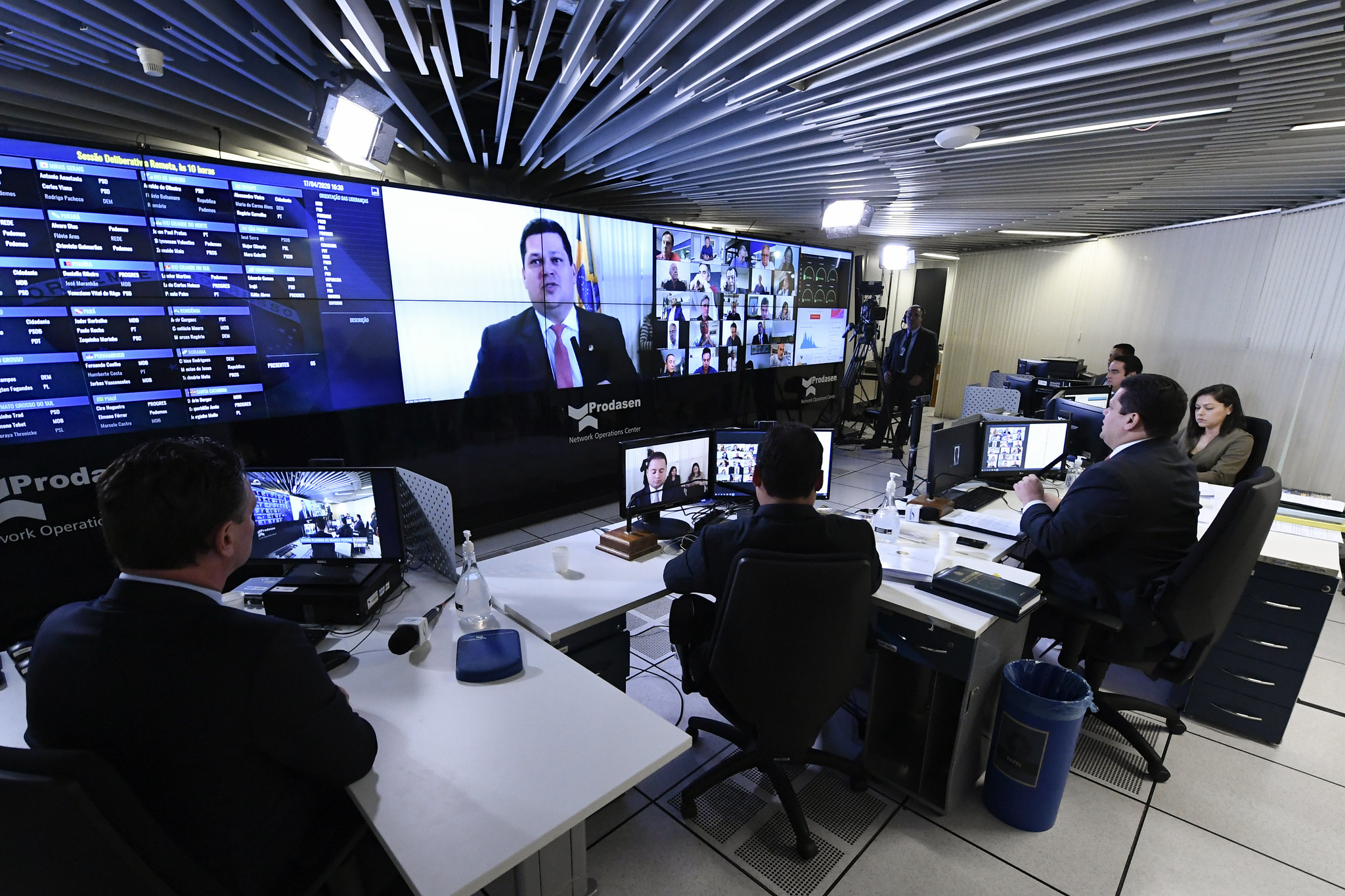 Presidente do Senado (à direita) comanda sessão virtual: medida provisória é complexa, com maior número de emendas nas história do Congresso