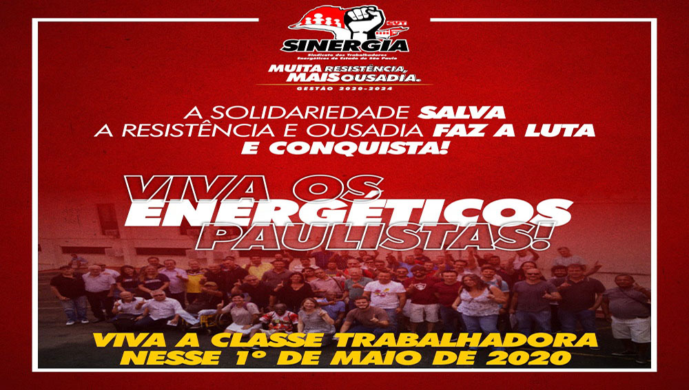 Neste 1º de Maio, Dia Internacional do Trabalhador e da Trabalhadora, em cenário ainda mais complicado diante da Covid-19, o Sinergia CUT reitera o seu compromisso de lutar pela garantia do emprego, da renda e da saúde das energéticas e energéticos do estado de São Paulo, bem como de buscar o acesso à população de um bem essencial e público, que é a energia.