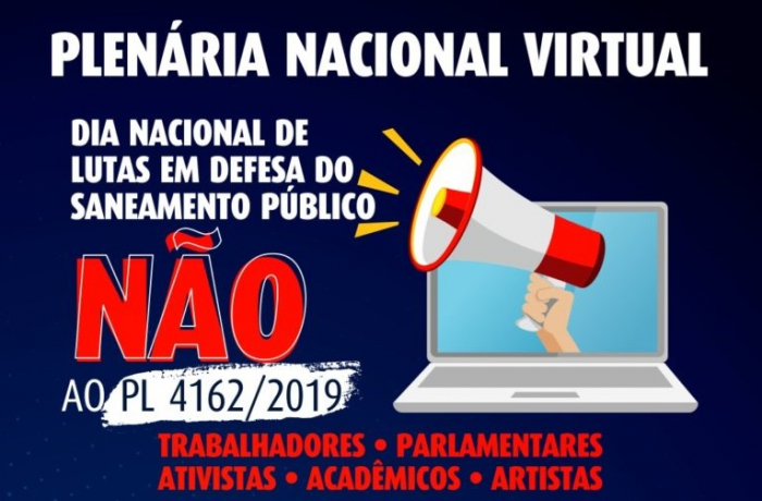 Em defesa do saneamento público, 27 entidades de representação nacional e internacional – e mais os sindicatos dos urbanitários dos estados – se unem em Plenária Virtual com objetivo de fortalecer a luta contra o PL 4162/19, que tramita no Senado e que pode ser colocado em votação na quarta-feira (24/6), conforme declaração do presidente da Casa, Davi Alcolumbre.
