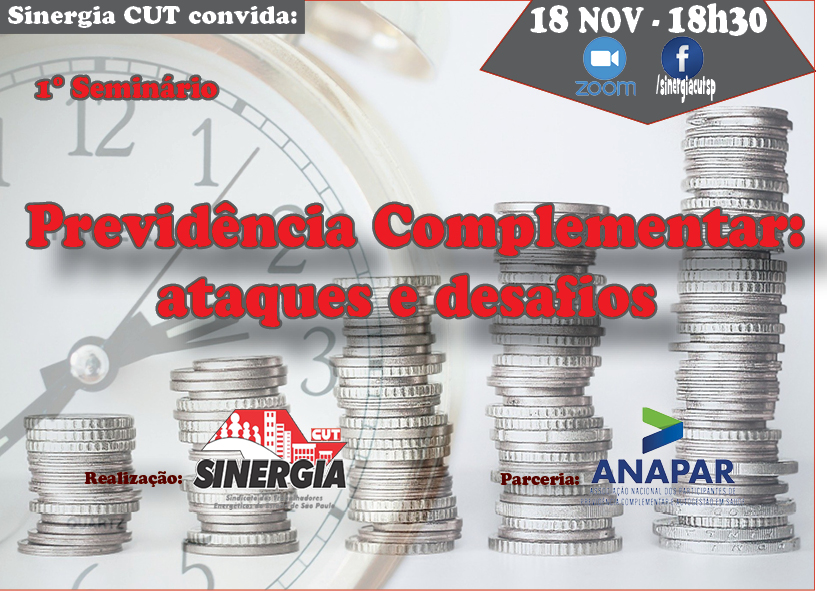 A previdência complementar não foge deste quadro tenebroso. É por isso que no próximo dia 18, das 18h30 às 20h30, o Sinergia CUT, juntamente com Anapar promoverá o Primeiro Seminário “Previdência Complementar: Ataques e Desafios”.