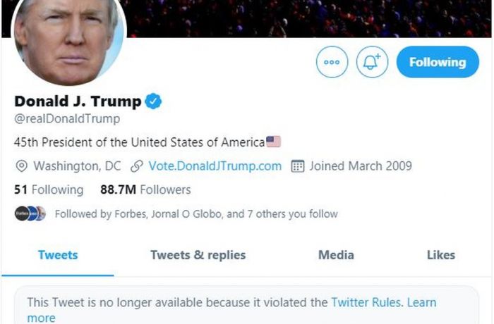 A decisão dos responsáveis por essas redes sociais foi tomada após o presidente norte-americano incentivar a invasão do Capitólio (Congresso) nessa quarta-feira (6) em discurso aos seus seguidores, que acabaram provocando atos de vandalismo durante sessão do Parlamento, que confirmou a eleição do seu adversário, Joe Biden. Na ação morreram 4 pessoas e 14 policiais ficaram feridos. Mais de 30 pessoas foram detidas.