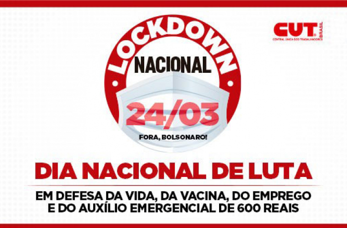 A CUT, demais centrais sindicais e as frentes Brasil Popular e Povo sem Medo mobilizam toda a classe trabalhadora nesta quarta-feira (24), para o Lockdown Nacional – dia de luta em defesa da vida, da vacina, do emprego e do auxílio emergencial de R$ 600 reais para desempregados e informais. Confira no final do texto onde já tem ato marcado e o que as principais categorias profissionais vão fazer em suas bases.