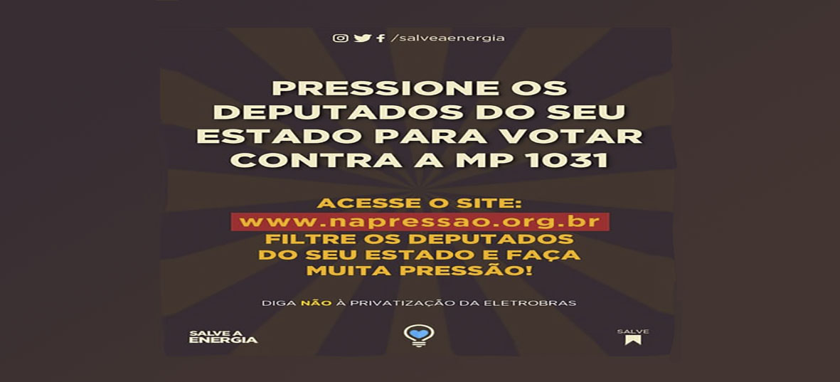 NOSSA RESISTÊNCIA PARA IMPEDIR QUE A MP DO APAGÃO SEJA VOTADA!