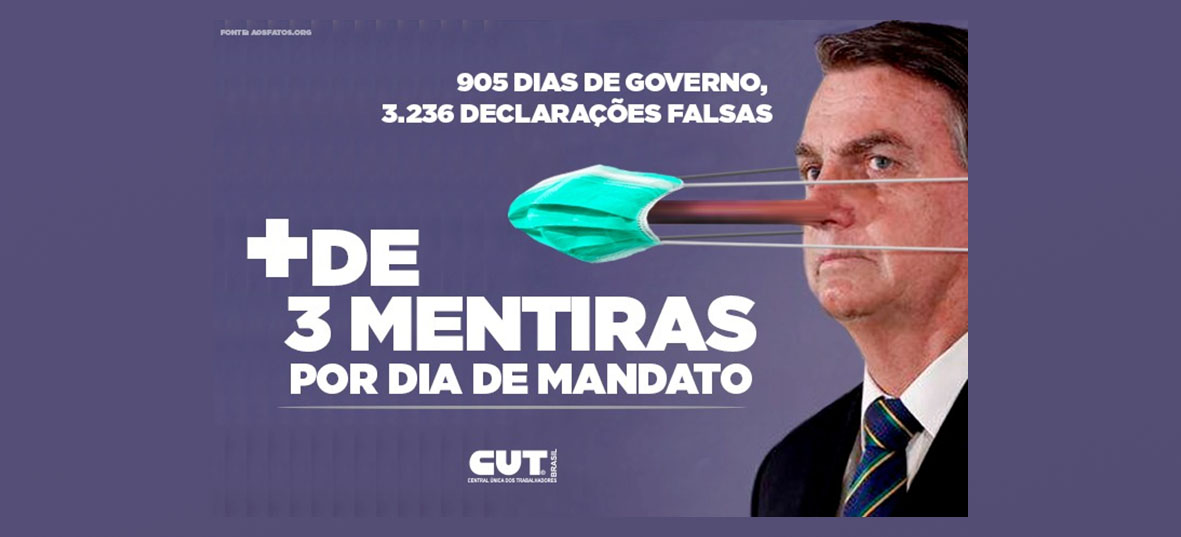 Levantamento feito até a última quinta (24), mostra que, em 905 dias de governo, Bolsonaro deu 3.326 declaraçõs falsas ou distorcidas por dia, mais de 3,6 por dia