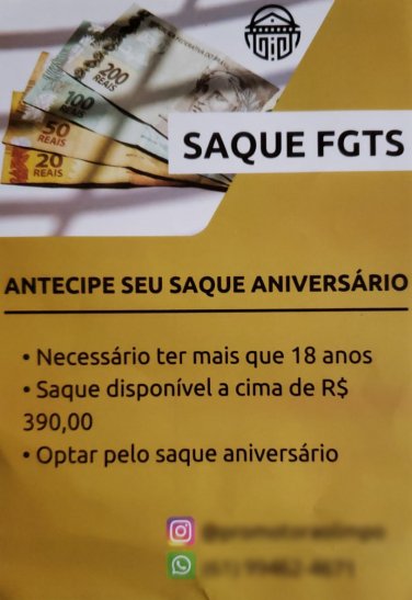 Normalmente o saque-aniversário pode ser feito uma vez ao ano. Por exemplo, quem tem R$ 20 mil na conta pode retirar até 10% (R$ 2.000) mais R$ 1.900, o que totaliza R$ 3.900 ao ano.
