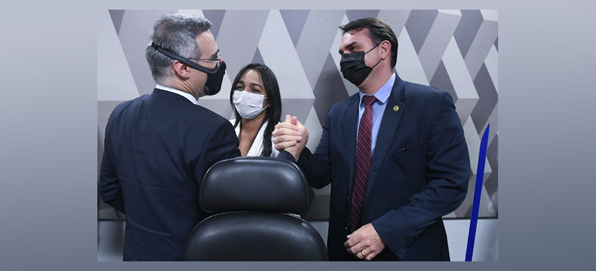 Confraternização entre o novo ministro do STF, a relatora Eliziane Gama e Flávio Bolsonaro